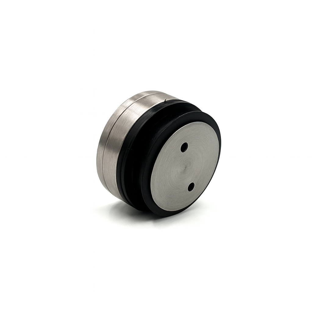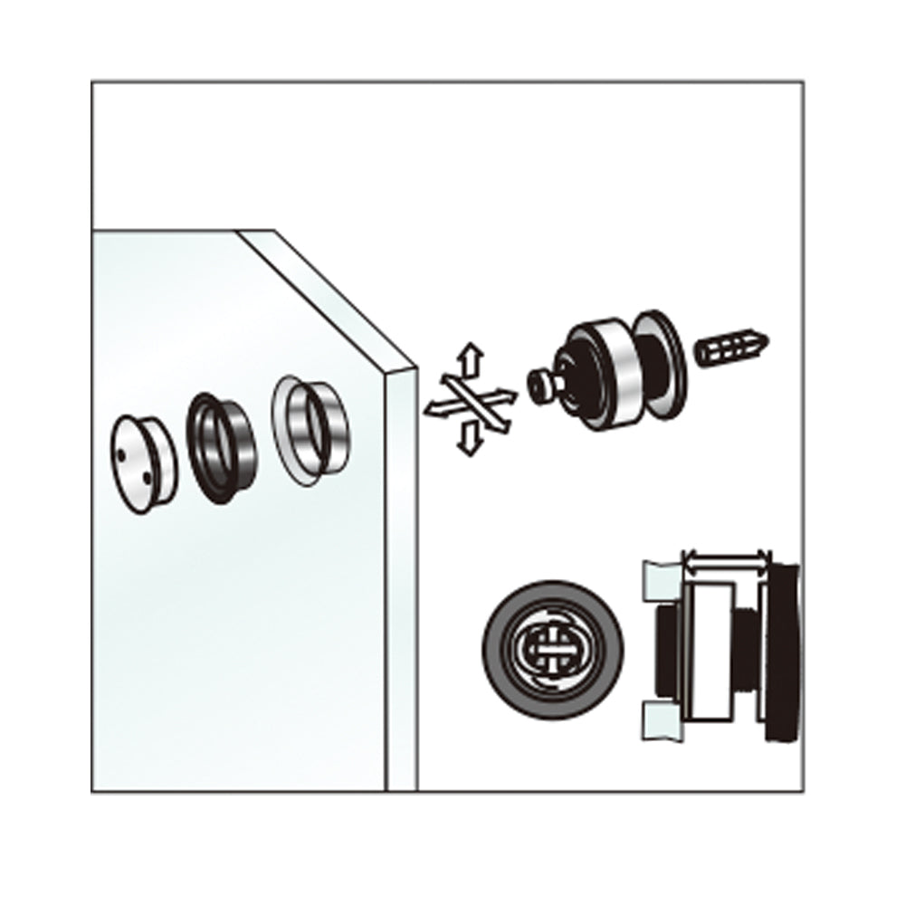 Round, single-point glass-to-wall connector for secure, accurate mounting.