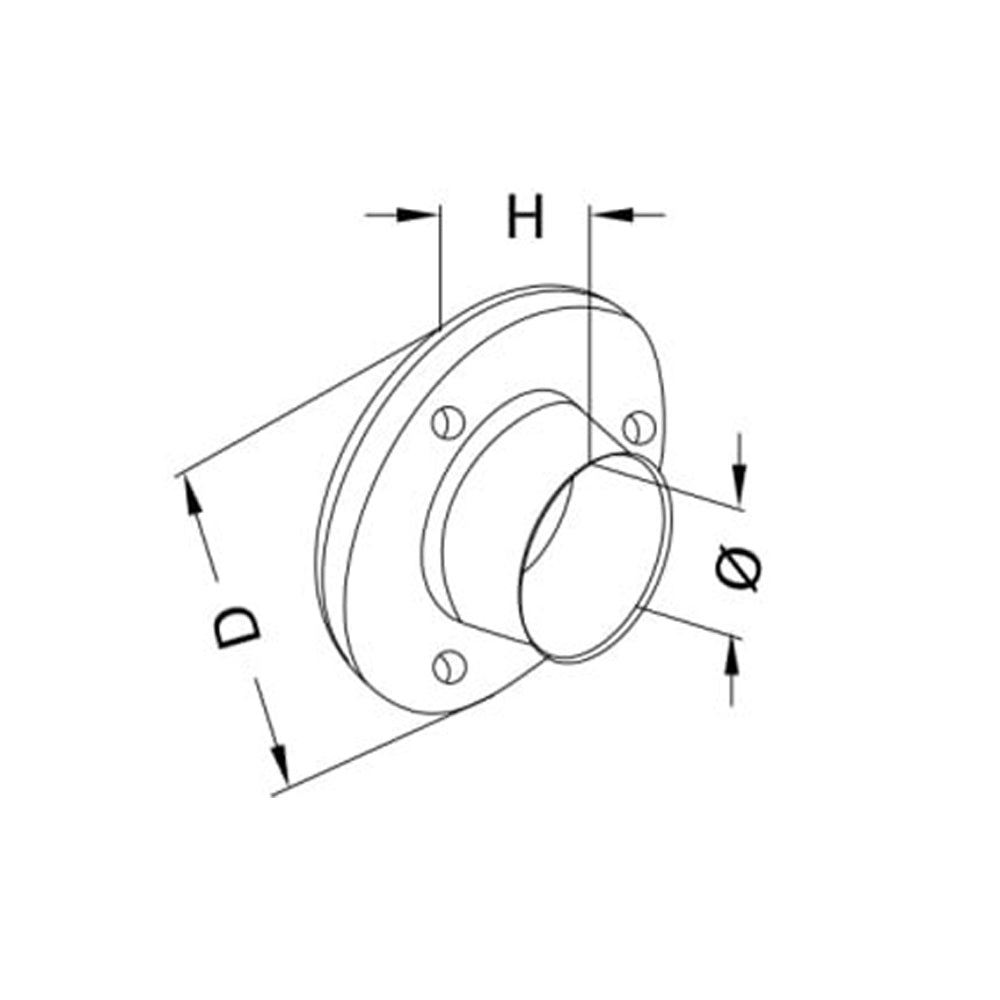 A tidy wall-mount termination for tubular handrails and balustrade runs. Fix the flange to a flat surface with countersunk screws, slide in the tube, then tighten the internal grub screw for a secure hold.