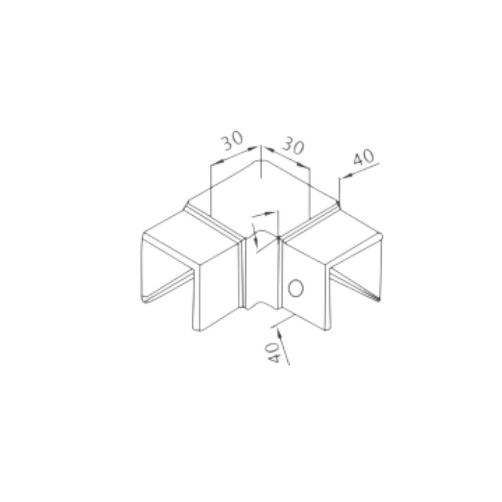 Right-angle connector for joining 40 × 40 mm square cap rails.