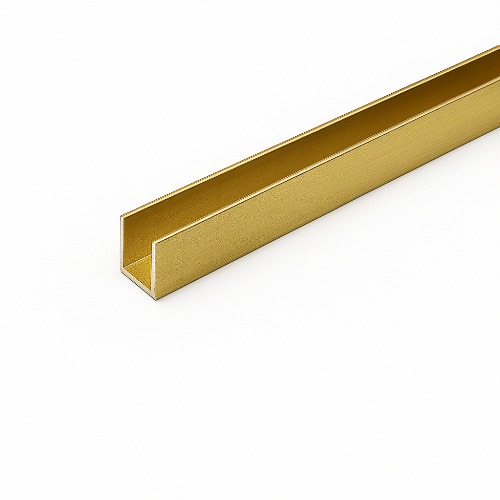 Aluminum U-Channel for 8 mm Glass | Brushed Gold