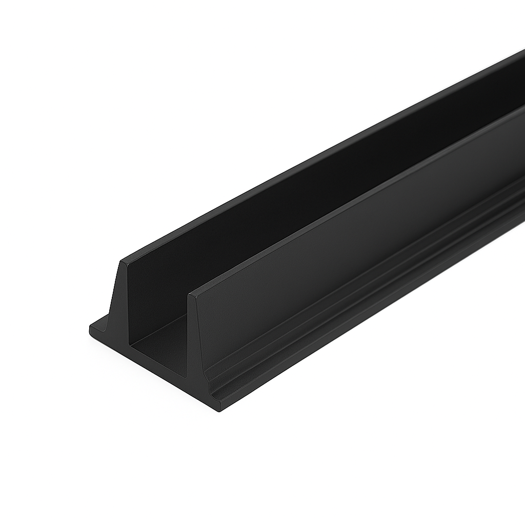 Clip-on cover trim for 10 mm glass U-channel installations. Conceals fixings and provides a clean, finished look along the channel.