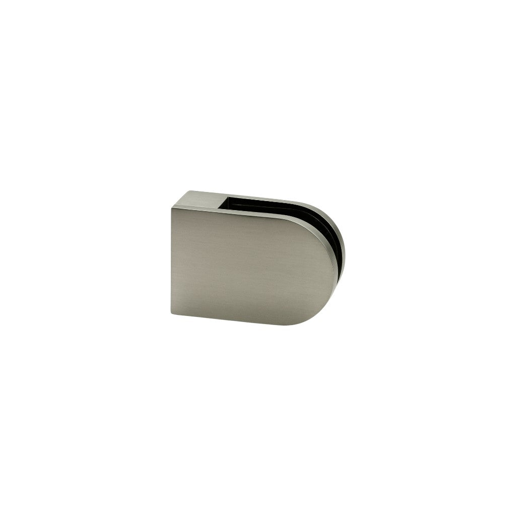 D-shape stainless-steel glass wall clamp for outdoor installations. Designed to mount onto tubular/round posts, it securely holds 10–12 mm glass and comes in two compact face sizes.