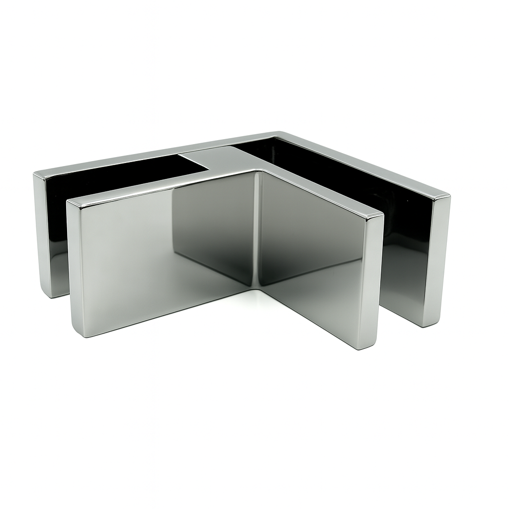 90° Glass Connector | Glass-to-Glass Corner Bracket | Polished Chrome