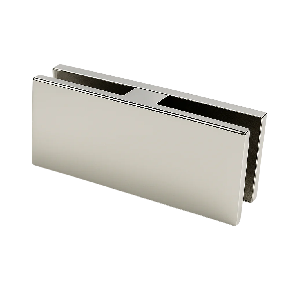 In-line connector for joining two glass panels in a straight line to create sleek, frameless runs. Made from durable 304 stainless steel with a polished chrome finish.
