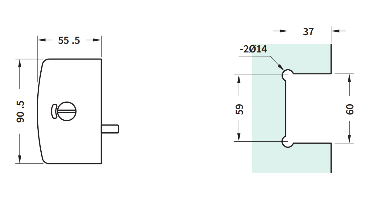 Clamp-on lock for frameless glass doors with an exterior occupancy indicator (changes color via the interior thumb turn). Reversible for left or right handing.