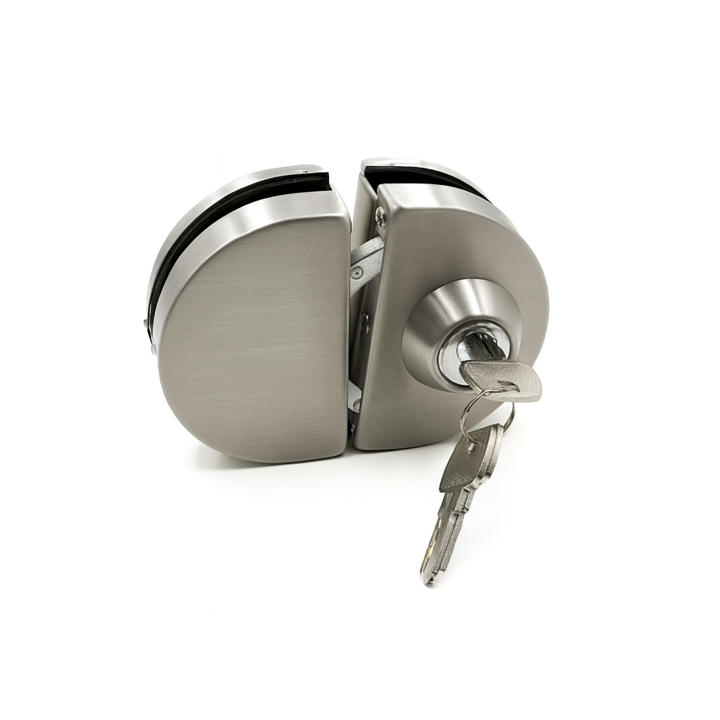 Glass-to-Glass Door Lock with Keys | Half-Round | Satin Nickel