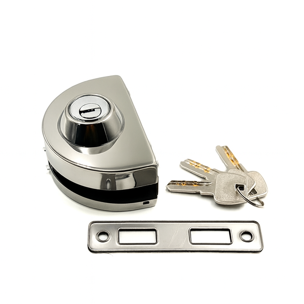 Glass-to-Wall Door Lock with Key | Half-Round | Polished Chrome