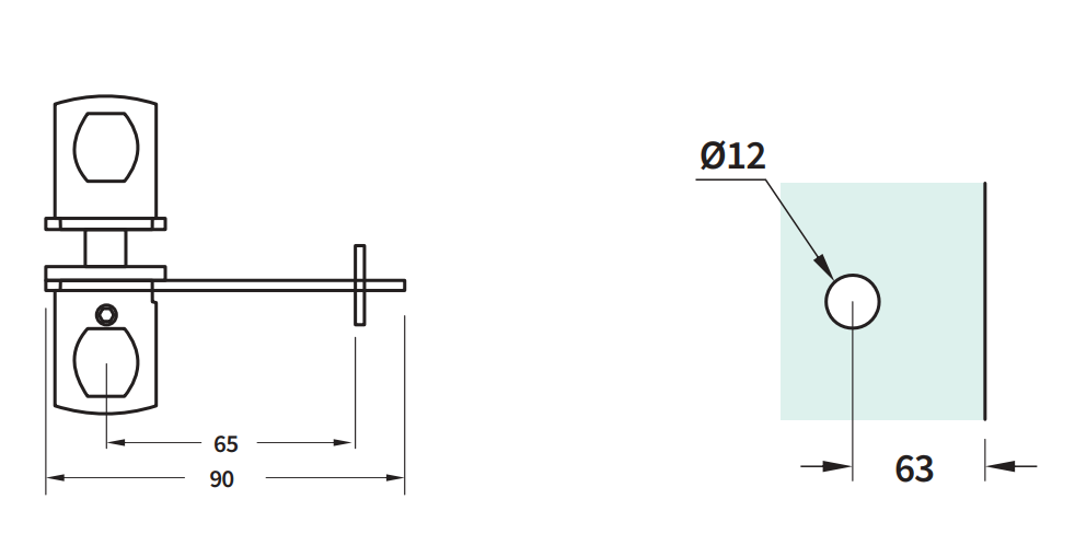 Fixing: Requires Ø12 mm hole; protective washers included