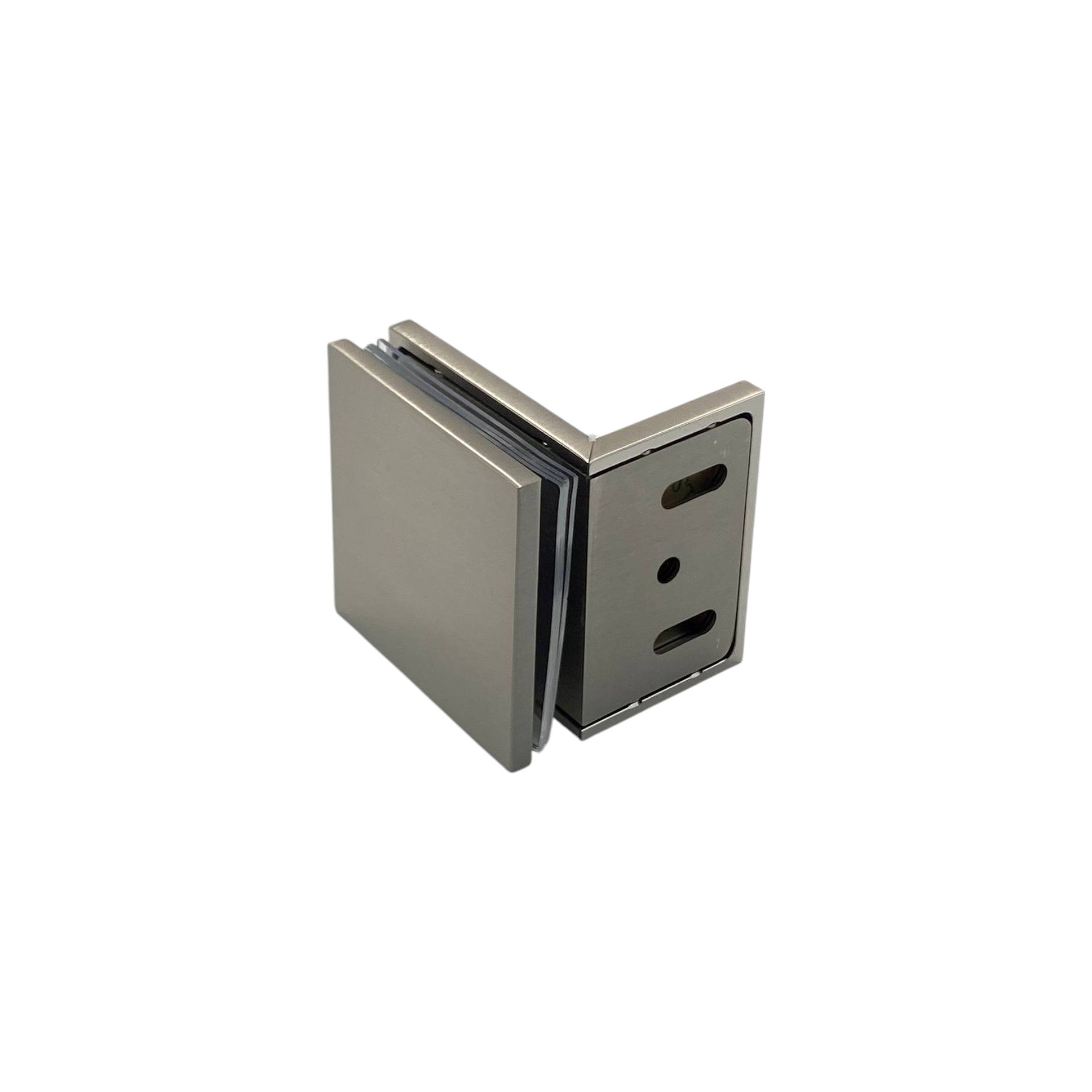 Offset Plate Wall-to-Glass 90° Bracket With Cover | Satin Nickel