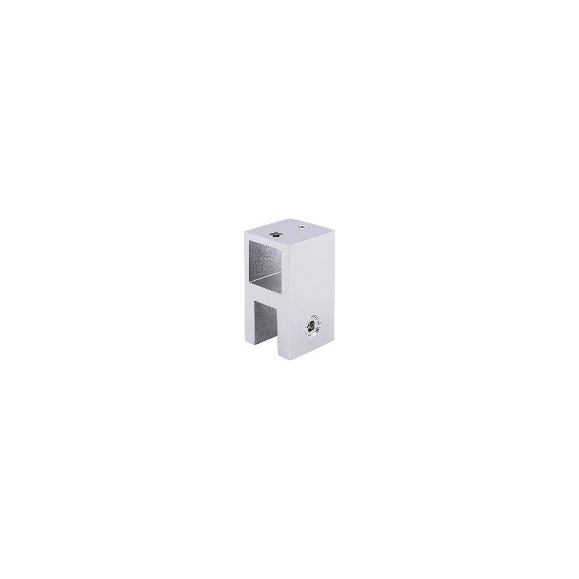 Glass-mounted connector for fixing a stabilizer/support bar to a glass panel on frameless enclosures.