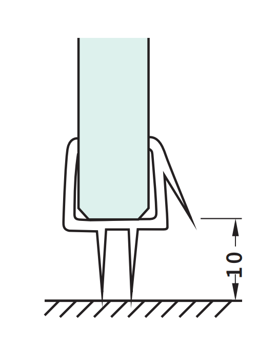 Snap-on bottom seal for frameless shower doors. Integrated drip rail channels water back into the enclosure, while dual wipe fins provide extra splash protection—no drilling required.
