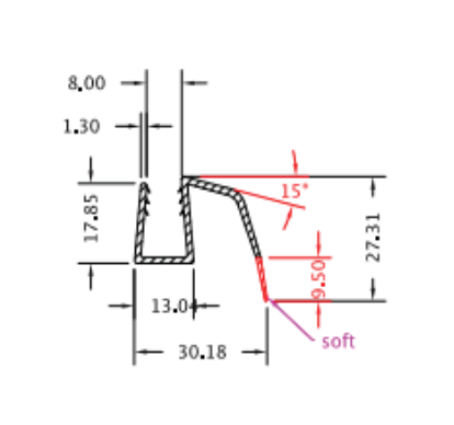 Shower PVC H Seal with Soft Leg – For 8mm Glass