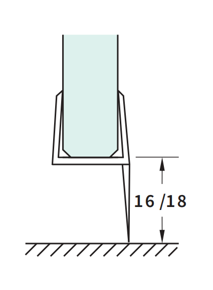 Snap-on bottom seal for frameless shower doors. H-profile with an extended 18 mm lip to bridge larger gaps and deflect water back into the enclosure—no drilling required.