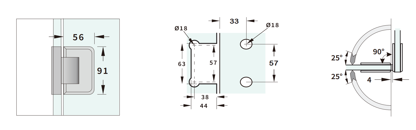 Mounting Type: Glass-to-Glass (door to fixed sidelight)