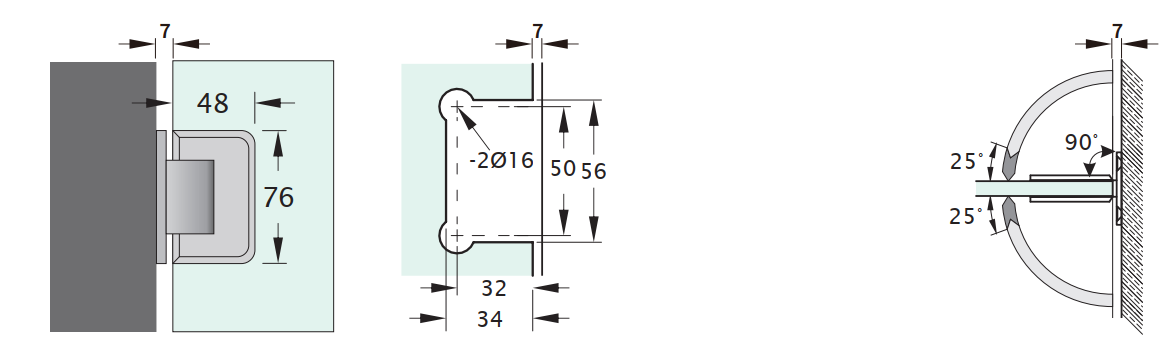 | Weight of Door | Up to 35kg (Using 2 Hinges) |